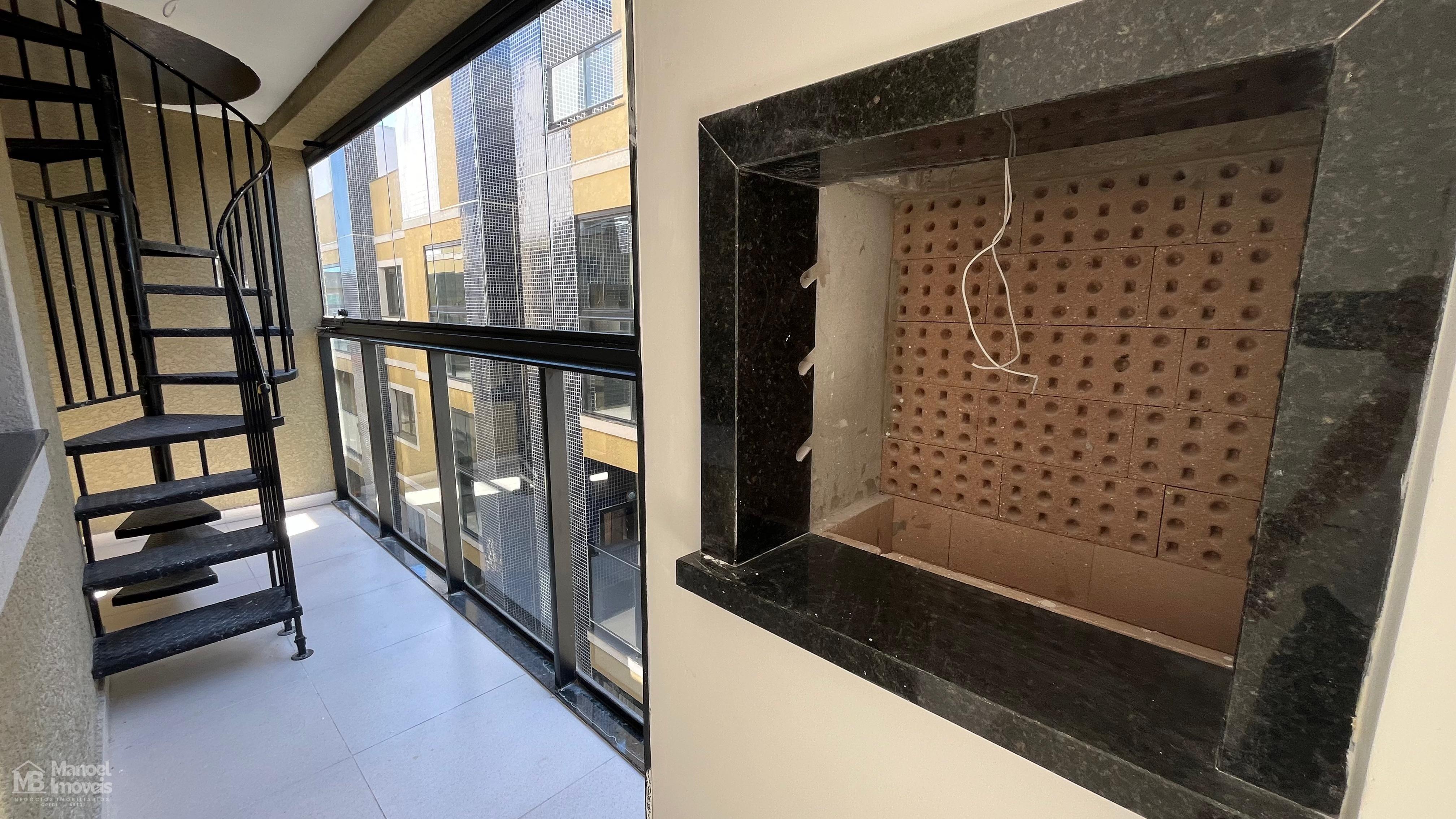 -escada na varanda com churrasqueira.
